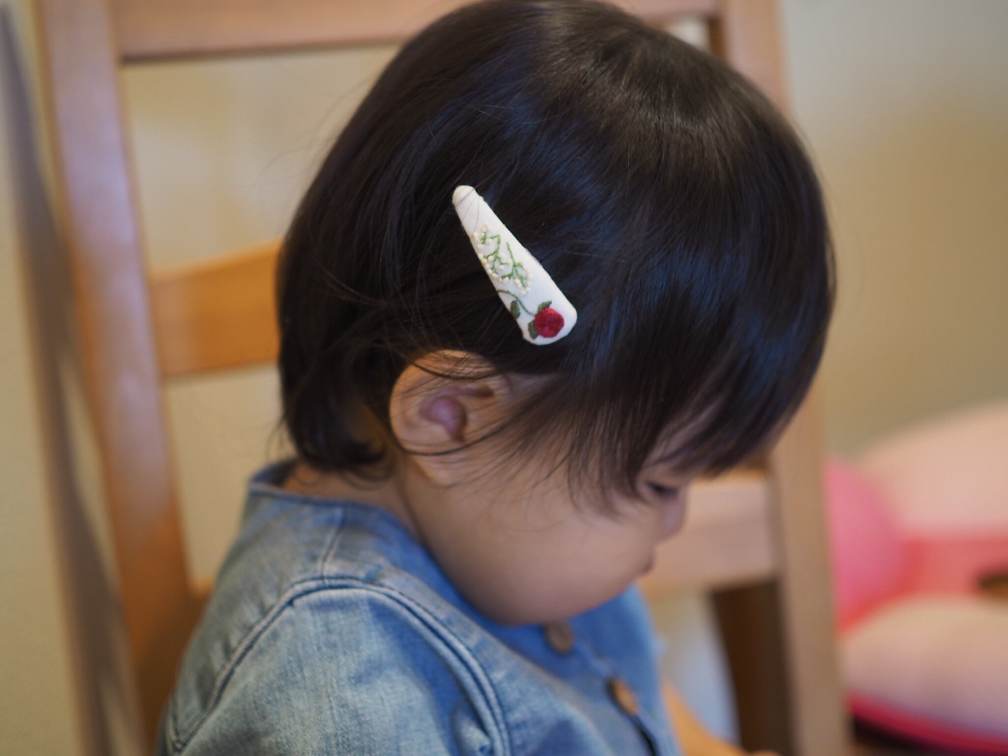 手刺繍ヘアクリップ(バラ・カスミ草)は、手仕事の温もりが感じられるアイテムです。