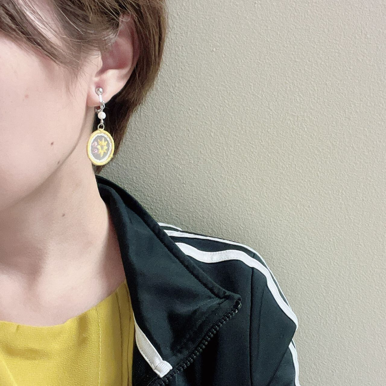 【推し色(黄色)】オーガンジー刺繍ピアス/イヤリング(星)