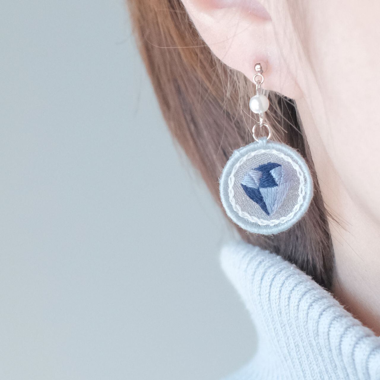 【推し色(青)】オーガンジー刺繍ピアス/イヤリング(宝石)